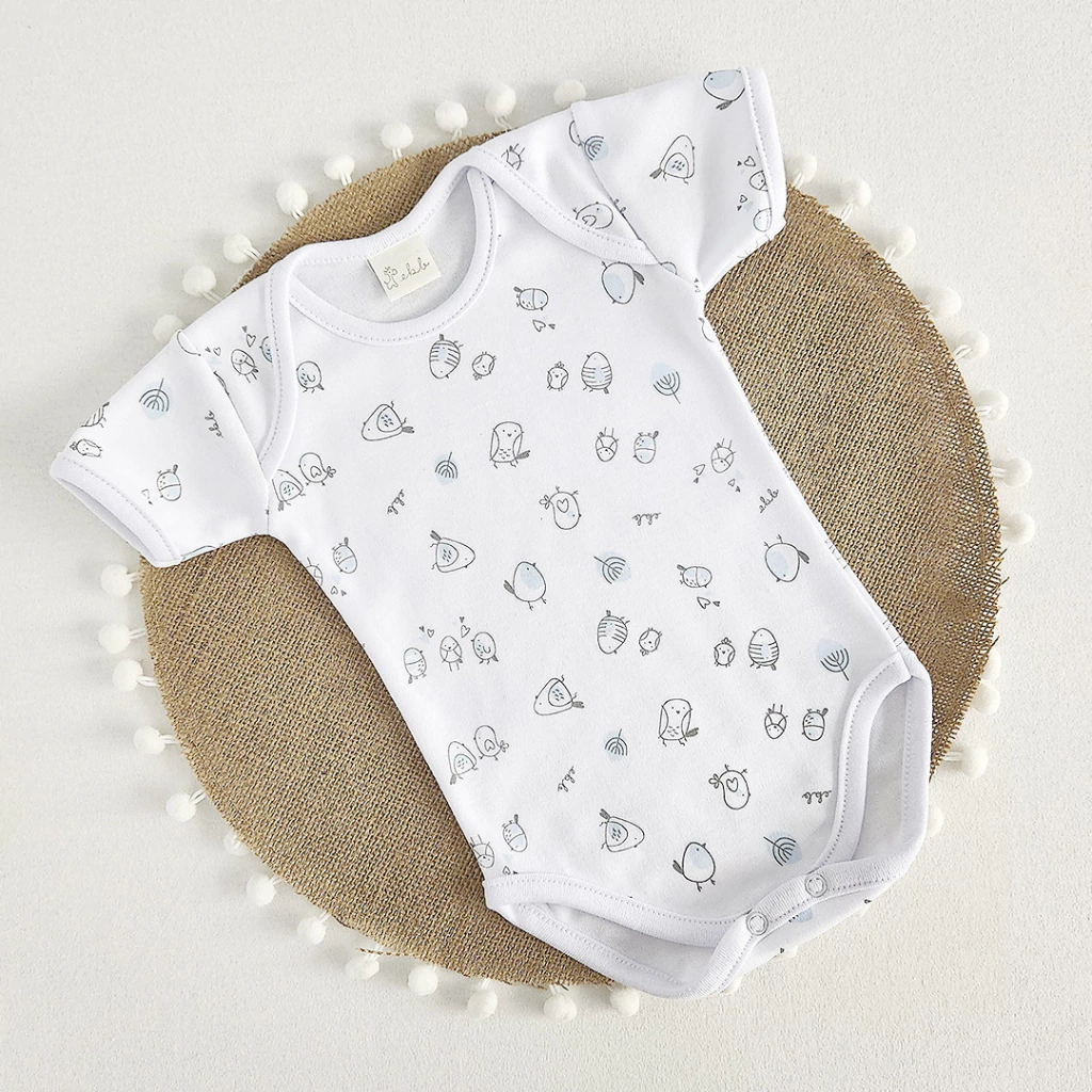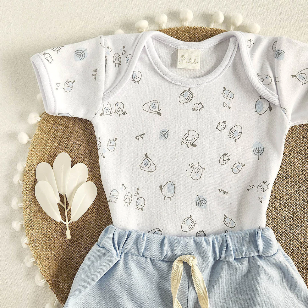 • Body manga corta en 100% Algodón Premium con estampa pajaritos de EstiloBebé de color Ciel.