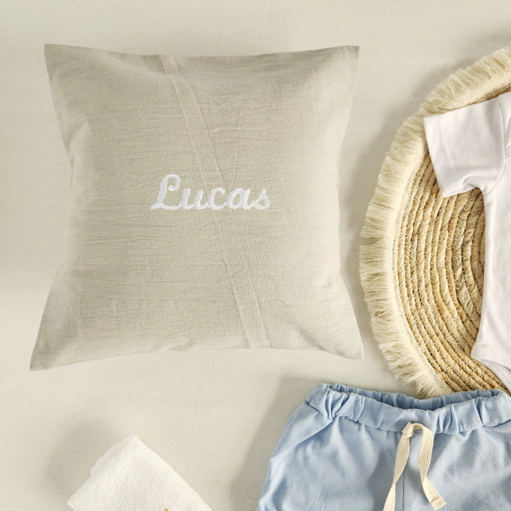 Almohadón PERSONALIZADO. Con funda desmontable en género Tusor 100% algodón. Relleno con material siliconado e hipoalergénico. Medidas 30 x 30 cm