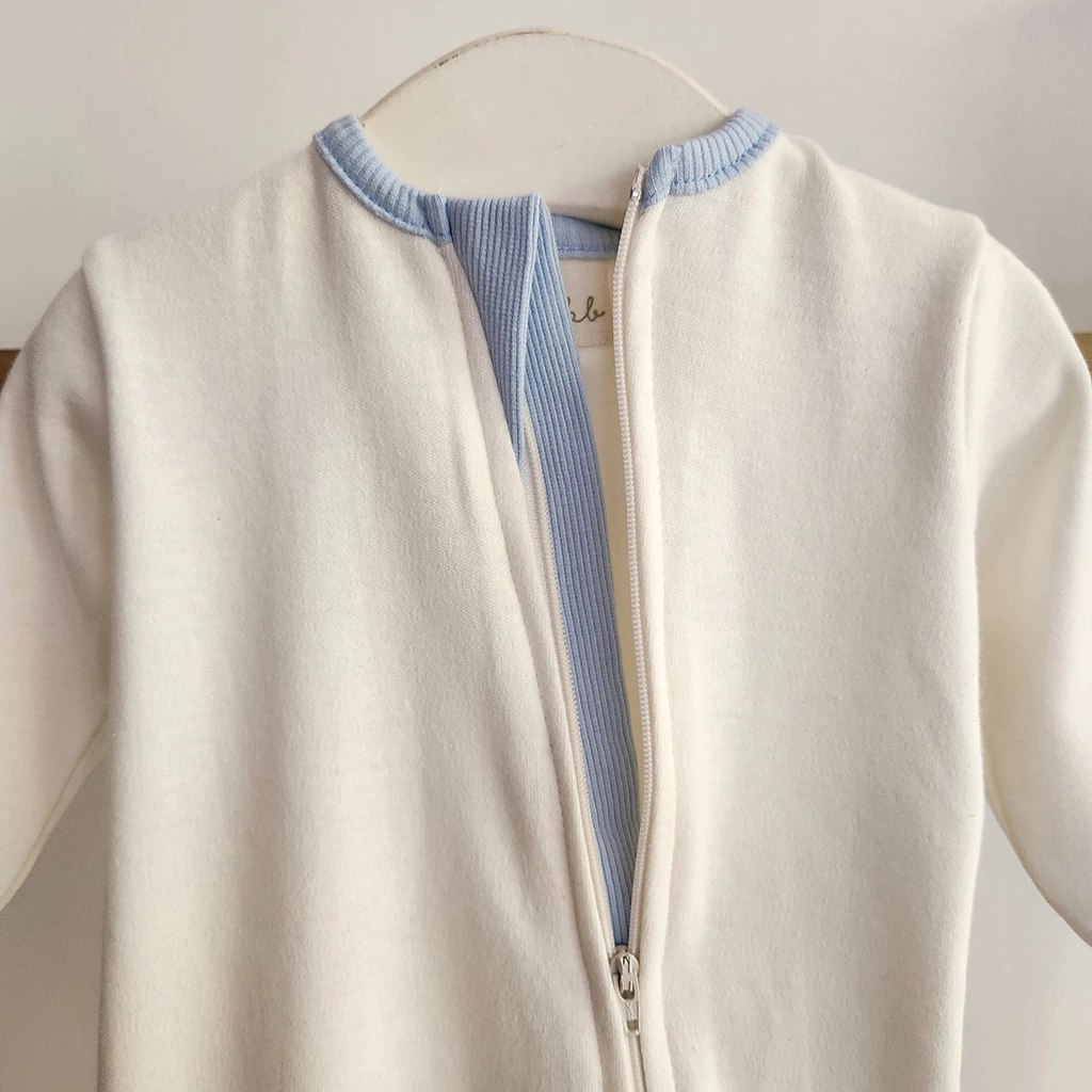 Apertura frontal con cierre en diagonal para facilitar el cambiado de pañales
