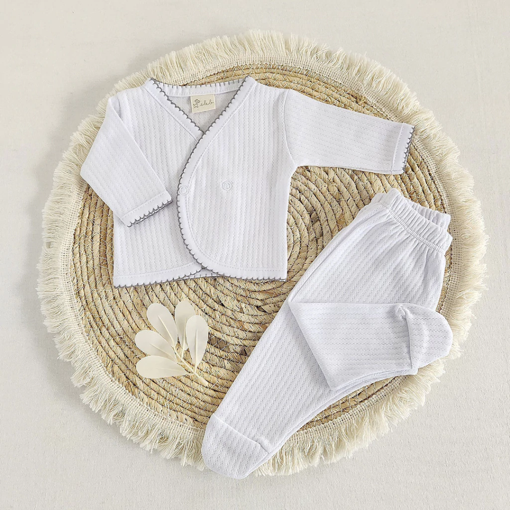 La camiseta tiene abertura delantera para facilitar la limpieza del ombligo del bebé