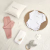Los productos son perfumados con delicada fragancia bebé y se envuelven en papel de seda. Todo presentado en bolsa sustentable con logo EstiloBebé, decorada con cintas de algodón en colores y tarjetón con dedicatoria.